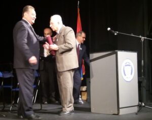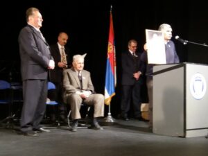 Najvise priznanje Plaketa Udruzenja sa zlatnom medaljom dodeljena jedinom zivom clanu – osnivaca i prvog Upravnog odbora Udruzenja 1968 g. Mate Matutinovicu